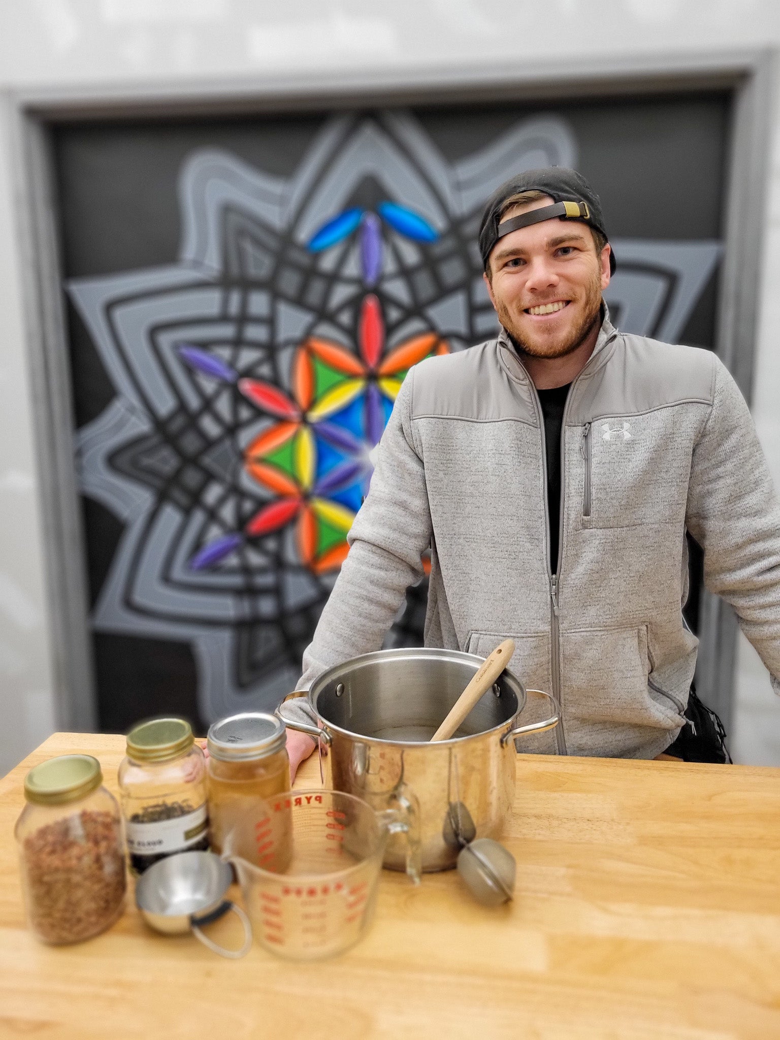 At Kombuchade, we stick to the traditional method, brewing patiently with the same starter cultures since 2014. Our ingredients are top-notch, and sourced from trusted suppliers like Rishi Tea & Botanicals. We prioritize organic + fair trade ingredients, and produce fluoride-free filtered water sourced from Lake Michigan inside our brewery.