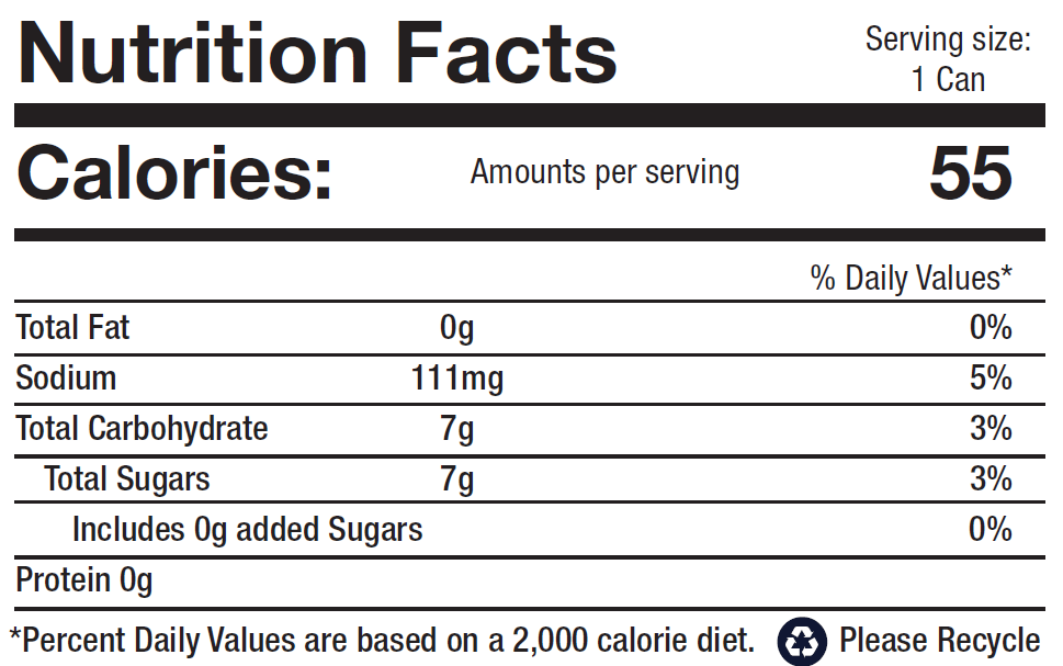 55 CALORIES/SERVING | NO ADDED SUGARS | 12oz CANS